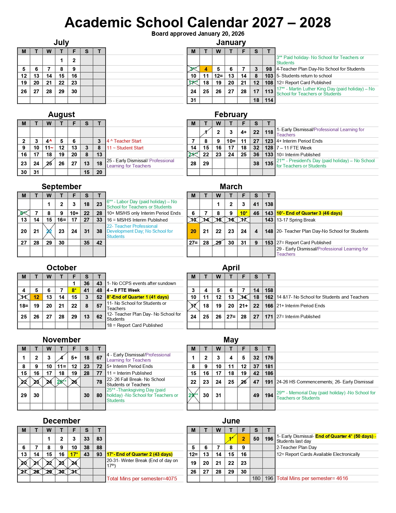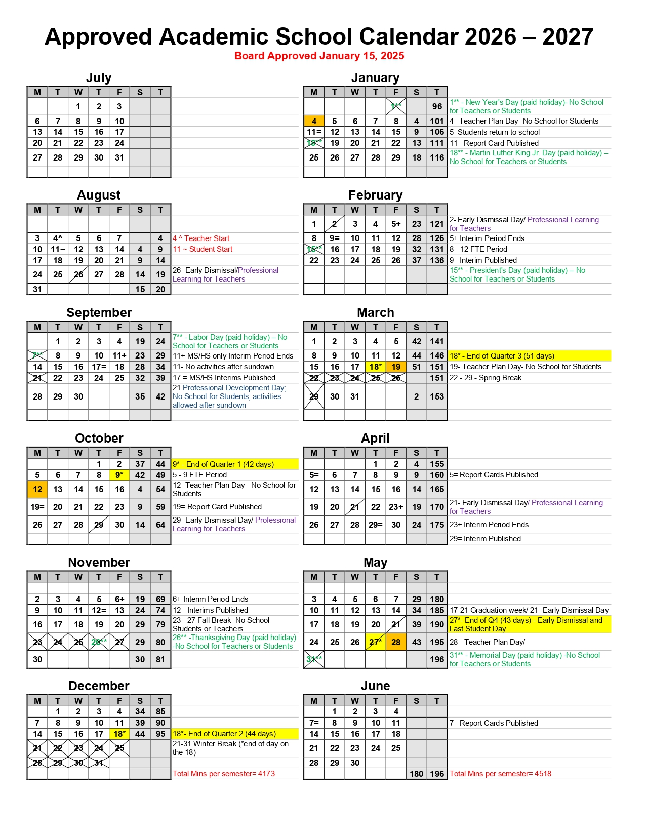 2026–2027 instructional calendar highlights. Confirm final dates on your district’s official site.
